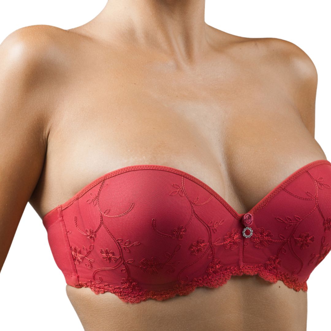 Setul contine sutien,chilot si jartea. Sutienul fara bretele cu push up, cupe captusite si decorate cu tulle brodat. Sutienul are si un set de bretele detasabile cu lungime reglabila si circuit cu banda de silicon pentru a preveni caderea cand este folosit fara bretele.